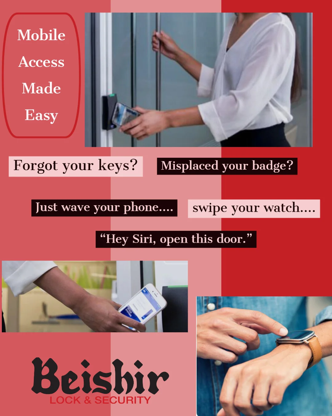 Mobile connectivity has changed the way we live, work and play. From smartphones to SmartWatches and tablets, mobile devices are ever present in today’s office environment, always on, and serve a variety of purposes. People misplace keys, they forget badges, but nobody forgets their phone! It’s estimated that Americans spend upwards of three hours on their cell phones every day, and we always know where they are. The invention of push-to-start cars made carrying keys in your pocket less necessary. They need to be somewhere nearby, but not always in hand. Phones, on the other hand, are almost always located in pockets or in hands, and therefore, are accessible without much effort and can now be used to for access control.
